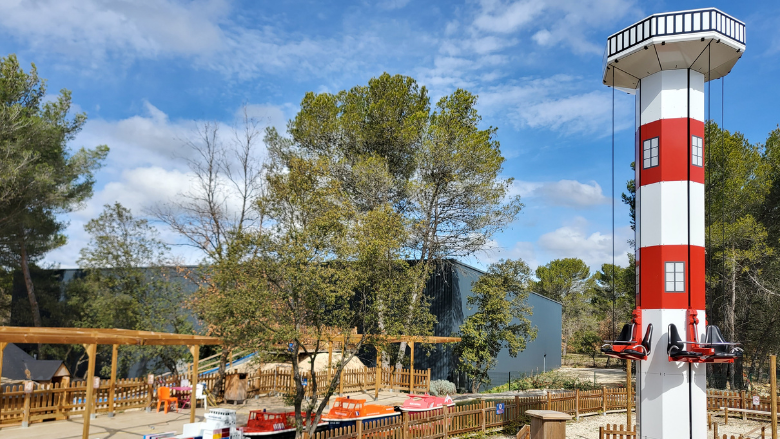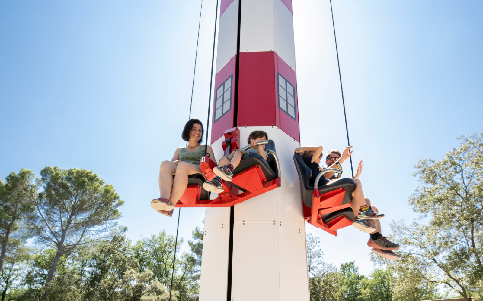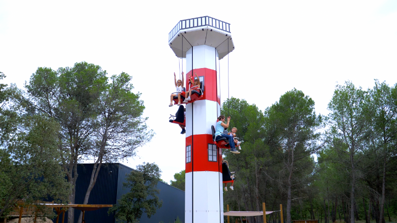 La tour s’élève tel un totem à 10 m dans le ciel.Il s’agit d’une tour panoramique Sunkid de 10 m de haut qui tourne sur elle-même, thématisée en phare. Elle est interactive, ce sont les passagers qui font monter les sièges en tirant la corde. Une belle attraction pour toute la famille.