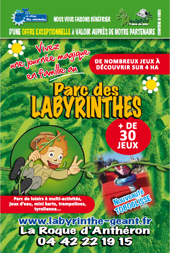 Pour chaque entrée au Village des automates ou Montopoto recevez un coupon de réduction à valoir chez notre partenaire le parc des Labyrinthes Géants!!!!!