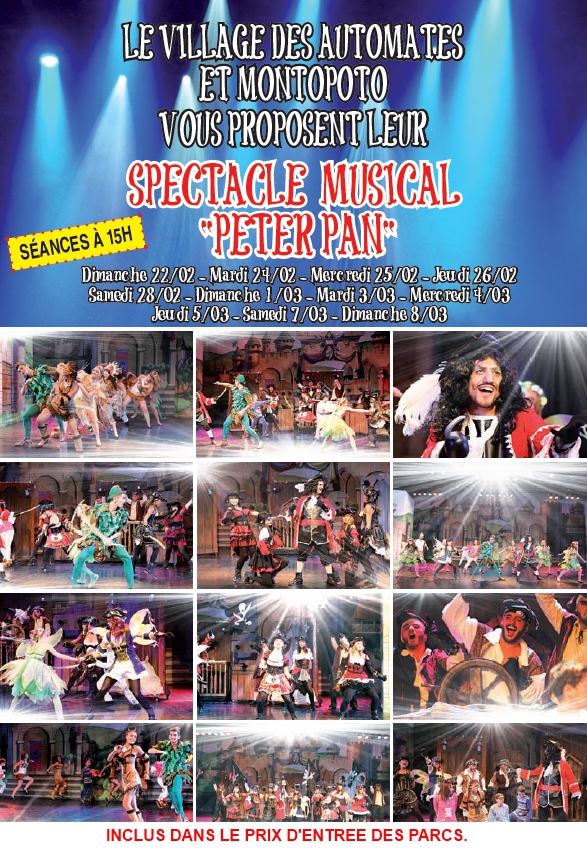 Le Village des Automates et Montopoto proposent pour les vacances scolaires de la zone B (Février, Pâques et la Toussaint) des spectacles en tous genres. Des comédies musicales ou des concerts, adaptées pour les plus jeunes mais qui raviront également les parents. Des décors féeriques, des musiques entrainantes et des danses endiablées. Un évènement à ne surtout pas rater.
